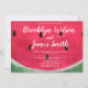 Convites de casamento de verão com gráficos de melancia e texto branco e mutável. Estes convites podem ser usados quando o casal hospeda o casamento com suas famílias.