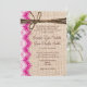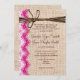 Apresenta um fundo arrombado impresso em cada lado do convite. O convite tem um embelezamento de cor-de-rosa e branco impresso na lateral. O topo tem um ornamento impresso de fio. A toca, o lugar e o fio são apenas designs impressos. Não se trata de um tecido real de burlap, nem de rendas reais ou de fio.
