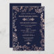 rosa de ouro elegante, moderno e falso chic e padrão de desenho floral azul de marinho de tendências, convites para casamento. Este design clássico e sofisticado é perfeito para o casal de competição de tendências e na moda. Personalize com sua própria mensagem na frente, assim como um monograma personalizado na parte de trás. Todas as impressão design.