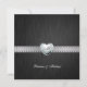 Convite de Casamento Elegante em Branco com Monograma Metálico e Coração, com texto de anúncio editável. Impresso em Papel Premium Platina. Adicione sua própria redação.