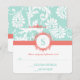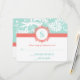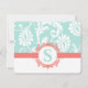 Convites de Casamento Românticos em Damasco com Monograma Modernos e Caprichosos em Hortelã e Pêssego. Cartões de Resposta de RSVP em Verde Arcadia Hortelã e Coral Emberglow Pêssego