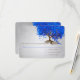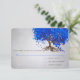 Convites Rústicos Luxuosos de Árvore com Folhas em Coração de Azul Royal e Prata - Árvore Mágica e Caprichosa do Amor com Folhas em Coração de Azul Royal em Papel Prateado com Tom de Chá e alguns desenhos delicados e espiralados para realçar as raízes do amor neste convite de casamento único da floresta silvestre...
