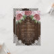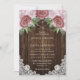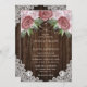 Complemente a sua festa de casamento rústica cor-de-rosa com estes elegantes convites de casamento florais com rosas rosa pinceladas num fundo de madeira de celeiro decorado com rendas florais brancas e luzes de cordas. Itens correspondentes disponíveis.