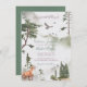 Bela floresta Woodland com pinheiros, raposa, pássaros voadores e atmosfera nebulosa em um fundo falso e muito leve de cinzas. Perfeito para uma queda ou casamento no inverno com uma sensação natural do lado da montanha. Muitos itens correspondentes em um!