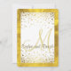 design de luxo e romântico com moldura de folha de ouro, confete de ouro, corações e setas em fundo branco. Use a ferramenta Personalizar para adicionar seu monograma, nomes, cores de casamento e informações no verso. Para obter acessórios correspondentes, consulte minha coleção Dourada de Casamentos de Confetti, Corações, Setas e Couro Branco e Preto.