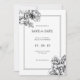 Convites de casamento preto e branco com flores gr