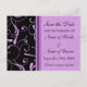 Convites de casamento save the date em padrão de redemoinho preto e roxo elegante, estiloso e totalmente personalizável com os detalhes do seu casamento. Também disponível em muitos outros produtos para a festa de casamento.
