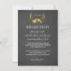 Simples e elegante! Um design de decoração rústica boho, com chifres de antílope em folha dourada adornados com luzes de corda, flores (rosas) num fundo de quadro de giz. Use a ferramenta Personalizar para adicionar as suas informações. Para mais papelaria de casamento, visite a nossa coleção Eventos de Todas as Estações com Antílopes Rústicos Embelezados.