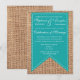 Convidações de Casamento Russo de Impressão de Burlap, com fundo impressão de burlap e faixa azul de azul-azul-turquesa com o convite para o casamento. A parte de trás do convite também é o impressão de burlap. Este é um design impresso, NÃO um tecido real. Estas são perfeitas para casamentos no campo ou casamentos no celeiro.