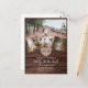 Estes convites de casamento são impressos em cartões postais que os fazeres um excelente convite de casamento orçamental e ainda parecem excelentes! Adicione suas próprias fotos ao coração de madeira, um convite para o painel de cercas de madeira que tem fontes escritas à mão e um celeiro rústico, um tema de casamento contrários.