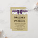 Convites para Casamento Rústicos de Vintage Burlap — cada convite apresenta um fundo impresso de burlap, claro, com um cadarço branco impresso no topo. Por cima do cadáver impresso está um arco roxo, aparado em ouro, com rochas impressas e uma pedra de diamante para uma maior feminilidade. Esses convites são perfeitos para temas de casamento rústicos, country, ocidentais, antigos e semelhantes. Você também pode personalizar este cartão para usar como convites para janto de ensaio, aniversários e muito mais. Estes convites para o casamento são feitos com um cartão básico de alta qualidade; entretanto, você pode mudar o estoque para linho, feltro (gravado), reciclado e várias tonalidades metálicas se quiser com o número 2 (escolha seu estilo, tamanho e tipo de papel) abaixo do botão laranja adicionar ao carrinho. Também nessa opção é apresentada uma lista dos custos adicionais de uma reserva de cartão mais antiga. Cada convite tem um envelope branco.
