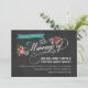 Vintage Banner Floral Chalkboard Wedding Invitations — buquê russo de rosas abstrato, margaridas e flores brancas de flores silvestres com banner clássico azul e caligrafia de script de estilo vintage na lousa slate+cinza faz um convite de casamento preto-e-branco com um toque de cor. Adicione seus nomes e informações de casamento neste modelo fácil de usar. A tipografia retrógrada com estilo de impressão em letras e giz misturado elegante com script de rico é adequada para o tema formal ou semissformal. Perfeito para casamentos modernos modernos com um toque clássico, mas casual, de charme sofisticado para a noiva e noivo tradicionais. Pacote de casamento completo, conjuntos de papelaria de noiva, kit de correio e acessórios de correspondência, disponível a pedido. Entre em contato conosco para obter ajuda com a personalização se precisar de espaço adicional para os detalhes do casamento. Tema de Casamento Botânico © maio de 2013