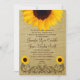 O topo do convite apresenta um grande girassol amarelo brilhante com belas pétalas de flor amarela. O plano de fundo é um design de burlap impresso (não um tecido real de burlap lap). Ele tem um impressão de rolagem de vinha floral ornamentado no fundo do convite com dois pequenos girassóis em cada extremidade. A parte de trás do convite tem o mesmo design de impressão com os dois girassóis no fundo e também tem a data do casamento em números em letra de script de rico. Estes convites de casamento de girassol rústico são perfeitos para casamentos de campo, casamentos de celeiro, casamentos fazendas, casamentos de cowboy, casamentos rústicos e qualquer pessoa que esteja usando girassóis em buquê de casamento ou decor de recepção de casamento. Decorar a recepção de casamento com burlap e girflower tornou-se muito popular para casamentos em estilo country. Estes convites de casamento de desconto irão acender o tema do casamento.