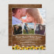 Convites de casamento rústicos de barato com fundo de madeira caipira, 4 fotos do casal noivo, girassóis amarelos brilhantes, luzes de cordas e um modelo de casamento moderno que é fácil de personalizar. NOTA: Estas são folhas de papel do orçamento, elas não vêm com envelopes. Entretanto, esse design pode ser transferido para cartões de convite que vêm com envelopes.
