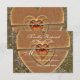 Um cartão de resposta de RSVP de casamento rural no campo apresentando um design camuflado de caça rústico com três corações de madeira empilhados um sobre o outro e amarrados com um design de cordel impresso. Esses cartões de resposta de casamento podem ser personalizados com seus próprios detalhes. O cordel é apenas um design impresso, não um cordel real. Eles são perfeitos para casamentos de caçadores, casamentos com tema de caça, casamentos camuflados e qualquer pessoa que use camuflagem em suas decorações de casamento.