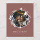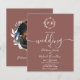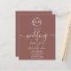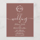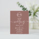 Um convite de casamento terracota com monograma de folha falsa floral chic simples. Fácil de personalizar com seus detalhes. Convite de casamento boho moderno editável, convite de casamento com foto de guirlandas, personalizável, fonte manuscrita caligráfica, simples, elegante.