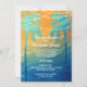Procurando por laranja festiva, ideias de convite para casamento tropical azul? Esta design de aquarela única apresenta 2 palmeiras com cordas de luzes moldadas romanticamente no topo desta bela modelo de convite para casamento tropical. Personalize este cartão personalizado com os seus próprios detalhes de evento! Categoria: modelos de convite para casamento de palmeiras; ideias de casamento tropicais e cartões personalizados. Cores: cor laranja, cor verde, azul e cor clara do pôr do sol.