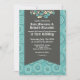 Convite de casamento com fundo de padrão de círculos geométricos e padrão de folha selvagem clássica em cima. Cor tema turquesa com design simples. Você está planejando um casamento na primavera ou verão com belas flores por toda parte. Então, talvez este seja o cartão perfeito para você. Personalize as palavras e fontes para se adequar à sua ocasião. Visite minha loja para mais variações deste design em cartão postal de Save the Date, etiqueta de endereço e mais.