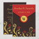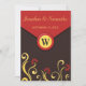Envelope Suavimentos Florais: Vermelho castanho e Amarelo - © Designs Sunny Mars. Convite de casamento personalizado elegante e oficial de 7" x 5" com um design de envelope castanho e vermelho, um botão de monograma e espirais florais bonito amarelo e vermelho.