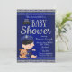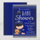 Convite de chá de bebê da polícia com adorável bebê vestindo uniforme de polícia fofo e cachorrinho em um fundo azul e prata. Este convite de chá de bebê da polícia é facilmente personalizado para o seu evento, basta adicionar seus detalhes no estilo de fonte de sua escolha. Este é um design impresso sem folha de alumínio real, jóias, etc.