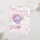 Convites de chá de bebê de balão de ar quente com lindo balão de ar quente floral roxo lavanda em uma nuvem e fundo floral vintage. Este lindo convite de chá de bebê de balão de ar quente é facilmente personalizado para o seu evento, basta adicionar seus detalhes.