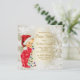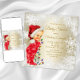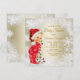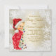 Convites de chá de bebê de Natal com adorável bebê vestido com um lindo traje vermelho de floco de neve e luzes de árvore de Natal em um lindo fundo de floco de neve branco e dourado. Estes convites de chá de bebê de Natal fofos são facilmente personalizados para o seu evento, basta adicionar seus detalhes no estilo de letra e redação de sua escolha.