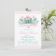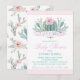 Convites de chá de bebê de menina com cactos rosa pastel e verde em um fundo azul escuro teal e rosa. Esses convites de chá de bebê cacto são facilmente personalizados para o seu evento, basta adicionar seus detalhes. Você também pode alterar a cor do fundo neste adorável convite de chá de bebê de menina cacto.