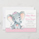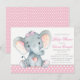 Convites de chá de bebê menina elefante com adorável elefante bebê aquarela usando um laço rosa em um fundo de bolinhas rosa doce. Estes adoráveis convites de chá de bebê menina elefante são facilmente personalizados para o seu evento, basta adicionar seus detalhes. Você também pode adicionar uma cor de fundo.