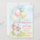 Convites de chá de bebê menina elefante com adorável elefante de bebê menina aquarela com balões em um lindo céu e fundo de grama. Esses convites de chá de bebê elefante menina doce são facilmente personalizados para o seu evento, basta adicionar seus detalhes.