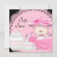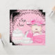 Convites cor-de-rosa e preto para baby girl "sip and see". Serviço de chá elegante em rosa e branco com convites para baby girl "sip and see" embrulhados para presente em rosa e branco. Adicione seus detalhes na frente e/ou no verso simplesmente escolhendo o botão "Personalize!" para começar a adicionar os detalhes do seu evento, estilo de letra, tamanho e cor da letra e texto. Alguns gráficos são de ©delightful-doodles. Por favor, note que todos os desenhos de convite que você encontrará na Zazzle são impressos em papel comum com gráficos sem joias, laços, relevos, dourados ou peças ou partes adicionais.