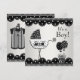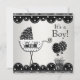 Convite de chá de bebê menino com trem e carruagem de bebê preto e branco adorável. Adicione seus detalhes na frente e/ou atrás simplesmente escolhendo o botão "Personalize!" para começar a adicionar os detalhes do seu evento, estilo de fonte, tamanho e cor da fonte e texto. Por favor, note que todos os desenhos de convite que você encontrará no Zazzle são gráficos impressos sem joias, laços, relevos, rebaixos ou peças ou partes adicionadas.