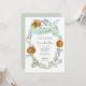 Esses convites de chá de bebê neutros em gênero apresentam um charmoso design de abóbora emoldurado por folhagens pintadas à mão em aquarela, tornando-os uma escolha perfeita para convites de chá de bebê de outono. A parte de trás apresenta uma tendência de lavagem verde sage, misturando estilo moderno com um sentimento natural e orgânico.