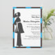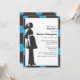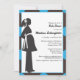 Esses convites de chá de bebê modernos apresentam uma silhueta moderna de grávida com um fundo azul brilhante e preto.
