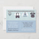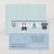 Há algo simplesmente fofo em roupas e acessórios de bebê miniatura! Assim, anuncie a chegada do pequeno cavalheiro com este convite que vem com roupas de bebê penduradas nas paredes, incluindo fralda de bebê, gravata borboleta inteligente e camisa e shorts com suspensórios, um colete com padrão de diamante e gravata azul-marinho, e um macacão de bebê com gravata borboleta falsa e suspensórios. Padrão de listras azuis para o fundo. Personalize facilmente com os detalhes da sua festa.