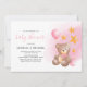 Convide familiares e amigos para celebrar a chegada do seu lindo bebê. Estes convites de chá de bebê apresentam um fundo branco simples, um urso em aquarela, balão cor-de-rosa, estrelas douradas e uma mamadeira, além de um modelo moderno de chá de bebê fácil de personalizar.