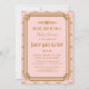 Esses convites para o chá de bebê contêm uma paleta cor rosa e dourada, um quadro geométrico e outros detalhes estilísticos, todos inspirados no Art Deco e nos vinte anos ruidosos. Você pode personalizar os campos de texto de exemplo de acordo com o seu gosto.