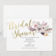 Convites de Chá de Noiva Boho Floral Branco Dourad