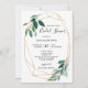 Nossos convites de chá de noiva com folhagem em aquarela exibem uma bela moldura geométrica juntamente com delicadas folhas verdes e fontes encantadoras. O verso apresenta confetes dourados.