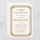 Esses convites de chá de panela apresentam uma paleta de cores branca e dourada, um quadro geométrico e outros detalhes estilísticos, todos inspirados no Art Deco e nos vinte e poucos anos ruidosos. Você pode personalizar os campos de texto de exemplo de acordo com o seu gosto.