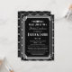 Esses convites de chá de panela apresentam uma paleta de cores preto e branco, um quadro geométrico, padrões geométricos e outros detalhes estilísticos, todos inspirados no Art Deco e nos vinte e poucos anos ruidosos. Você pode personalizar os campos de texto de exemplo de acordo com o seu gosto.