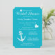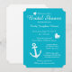 Convites de chá de panela náuticos de turquesa azul e branco Elegantes. A festa de casamento costume convida com pequenos corações brancos. Personalizar forma. Cor de fundo personalizada, isto é, azul aqua. Belo texto de script de na moda com âncora de barco vintage. Design de tema marítimo. Excelente para casamentos de praia e de destino
