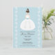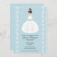 Personalize e personalize este chá de panela bonito com um fundo de textura azul clara e uma bonito noiva de morena num vestido de noiva sem traço com uma faixa azul e um padrão bonito florescente na saia. Ela veste uma flor em seu cabelo e os acessórios com um adorável par de brincos perigosos em forma de gota de lágrima. Clique no link a seguir para ver todo o nosso Chrissy H original. Ilustração © Chrissy H. Estúdios, LLC