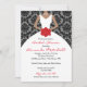 O chá de panela de uma noiva segurando um buquê vermelho... inclui uma cinza e um fundo negro damask. INFORMAÇÕES SOBRE OS DIREITOS AUTORAIS: Design Copyright © 2011 Convidando Expressões. Todos os Direitos Reservados. Uso pessoal e não comercial apenas.