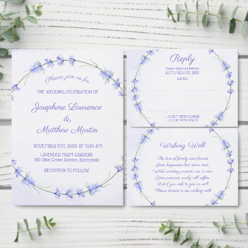 Estas convites de chá de panela de aquarela apresentam flores lavandas. Eles fazem parte de uma coleção que inclui uma gama de cheios de papelaria de casamento como cartões de resposta, cartões de informação, etiquetas de endereços, autocolantes, programas, presentes de noiva e muito mais. Visite as páginas de coleta em nossa loja para ver a faixa de cheios de produtos que você pode personalizar para o seu casamento