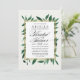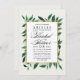 Greenery Watercolor Botanical Convites de chá de panela - apresenta um fundo de textura branco impresso de papel d'água com verde de cor d'água ao redor de uma caixa de texto cortada em ouro. Cada folha apresenta vários tons de aquarela verde para uma aparência única.