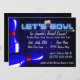 Convites de chá de panela De Boliches De Brilho Cósmico. Excelentes para qualquer festa do tema da chá de panela de boliche brilhante! Apresenta 2 pinos vermelhos acinzentados e brilhando como texto na página! Personalize com os detalhes de sua festa, o nome da noiva, o local da festa e as informações de rsvp para se divertir!