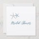 Convites de chá de panela de Starfish. Convites planos e quadrados em papel de champanhe metálico (você pode mudar), com texto modelo azul. Personalize usando as linhas de texto modelo no verso. As costas têm uma fronteira de estrelas. Vem com um envelope branco e ***as placas quadradas exigirão mais cartazes.