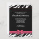 convites de chá de panela elegantes e elegantes com fundo zebra preto e branco e coração cor-de-rosa com design arco rosa. Eu sugiro um papel metálico para esta design.