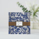 Convites de chá de panela de Denim e Couro do Oeste — combinam com a suíte de casamento encontrada abaixo nesta página. Cada convite apresenta um impressão de folha de folhas florais em gradiente prateado sobre um fundo impresso de denim. A frente também apresenta uma banda de couro marrom impressa com um monograma quadrado que lê Chá de panela em elegante escrevendo cursivo. Estes convites à apresentação de chás de panela estão preparados para um stock de cartões básico de alta qualidade; entretanto, você pode mudar o estoque para linho, feltro (gravado), reciclado e várias tonalidades metálicas se quiser com o número 2 (escolha seu estilo, tamanho e tipo de papel) abaixo do botão laranja adicionar ao carrinho. Também nessa opção é apresentada uma lista dos custos adicionais de uma reserva de cartão mais antiga. Cada convite tem um envelope branco.