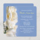 belas flores brancas de rosa em fundo azul. Convites para chás. arte floral, amor, romance, casamento. com